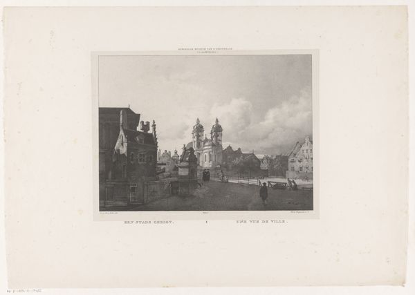 Paulus Lauters created this detailed print of the Vleeshal in Haarlem using etching and engraving techniques. The composition emphasizes the building's imposing facade, rendered with meticulous precision. Notice how the play of light and shadow across the architectural details creates a captivating texture, drawing your eye to the intricate ornamentation. Lauters' choice of perspective places the viewer at a slight distance, allowing the full structure to dominate the scene. The linear precision and tonal gradations reveal a structured approach to representing space. It is interesting to see the way light is used here as a structural component to highlight the building's three-dimensional form and separate it from the surrounding environment. The print not only documents a specific building but also reflects a broader cultural interest in architectural representation and the built environment. This structured composition invites us to consider how architectural spaces function as both aesthetic objects and sites of cultural meaning.