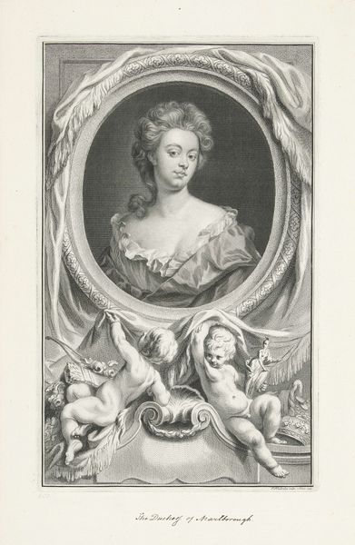 Jacob Houbraken created this print of Anna van Denemarken with engraving in the 18th century. This formal portrait of royalty is framed by neoclassical motifs, reflecting the values of order, reason, and hierarchy that shaped European society and its institutions at the time. Houbraken was a leading printmaker in the Netherlands, a country with a booming print culture that served both commercial and political purposes. He made numerous portraits of leading figures, often based on existing paintings. The image creates meaning through visual codes of royalty, such as the elaborate dress and jewelry and the Cupid figure with a garland. These elements draw on cultural references that would have been well-understood at the time. As an art historian, my role is to research the context in which this print was made and circulated. What was the role of portraiture in constructing authority and lineage? What was the function of institutions like the Rijksmuseum in preserving such images? This artwork and its afterlife can be better understood through research into the cultural and institutional contexts that gave it meaning.