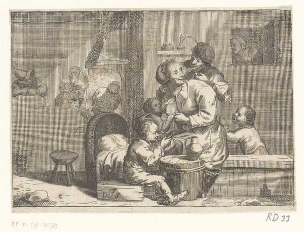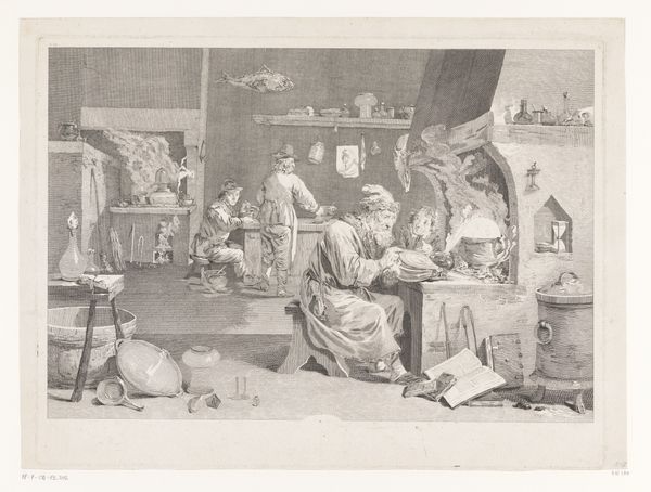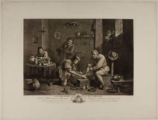 This print, “Veldchirurg met een patiënt,” was made by Thomas Major, and depicts a scene of a field surgeon attending to a patient. Notice the monkey perched above the scene. This motif appears frequently in Flemish art, symbolizing base instincts and foolishness. Often, a monkey is chained or contained, representing the control of these lower impulses. Yet, here, the monkey is free, perhaps mocking the folly of man as the surgeon tends to the patient's wound. Consider this image alongside the Memento Mori tradition, where skulls and decaying objects serve as reminders of mortality. Here, the wounded foot and the surgeon's tools invoke a similar contemplation of life's fragility. These symbols, passed down through history, engage our subconscious fears and anxieties. The monkey and the wounded foot remind us of our inevitable decay, tapping into a collective memory of vulnerability and the transient nature of existence. This image’s power lies in its ability to engage viewers on a deep, subconscious level, reminding us of our shared human condition through symbols that transcend time.