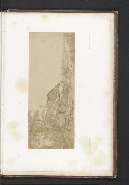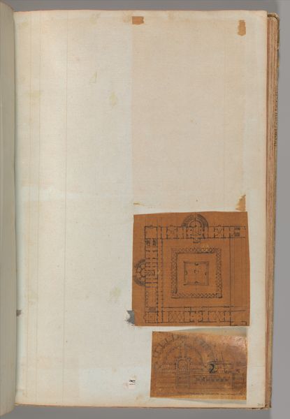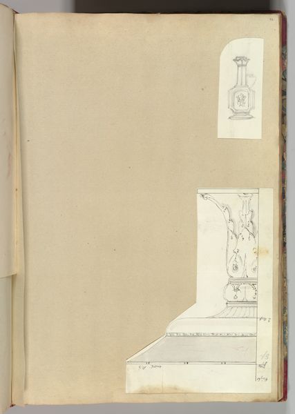 Curator: This is a page from a scrapbook, holding drawings and prints dating from around 1795 to 1805 by Charles Percier, an influential figure in the French Neoclassical movement. The sheet is a mix of pencil, colored pencil, and printed images, all on paper. Editor: There's an almost ethereal quality to the draftsmanship. It feels provisional, like glimpsing into an architect’s thought process where grand ideas take fragile, tentative form on the page. Curator: Percier's scrapbooks were intensely private spaces for the development of designs, and crucial to understanding his workshop practices. They showcase a range of sources he drew upon and often recombined in novel ways for both interiors and buildings. Editor: Exactly! The emphasis here is on documentation of ornament, light and portable for consultation. This sheet’s combination of griffin pillar motifs, fountain and interior decoration sketches points to a fascination with manipulating symbolic forms across different types of decorative elements. Curator: It's fascinating to consider how Percier’s studio systematized design elements; his use of antiquity was both academic and deeply inventive, informing the look of the Napoleonic Empire, for instance. Editor: I think also about the labor inherent in printmaking. These images probably acted like a collective resource of visual ideas for multiple hands to work with and to extract patterns from when creating designs across textiles or building exteriors. Curator: True, Percier effectively streamlined Neoclassical aesthetic and deployed it for propagandistic and social functions under Napoleon. That his scrapbook reveals that the production relied upon collected patterns also shows us the human scale of monumental design. Editor: Absolutely. Percier shows a democratizing aspect through reproducible components. Curator: Looking closely at Percier’s working practices illuminates the artistic decisions shaping the decorative programs that reinforced Empire ambitions. Editor: And for me it showcases artistic lineage built upon layers and fragments that transform across different physical domains of architecture. It also presents a rich catalogue of the way craft enabled neoclassicism in visual culture.
