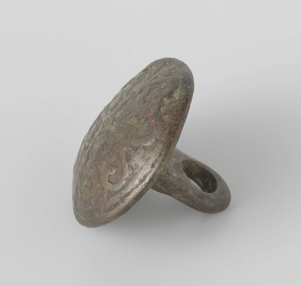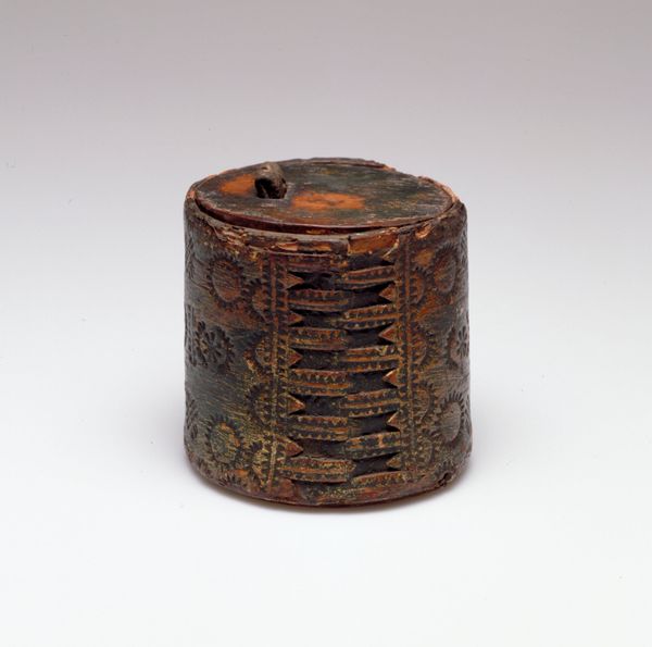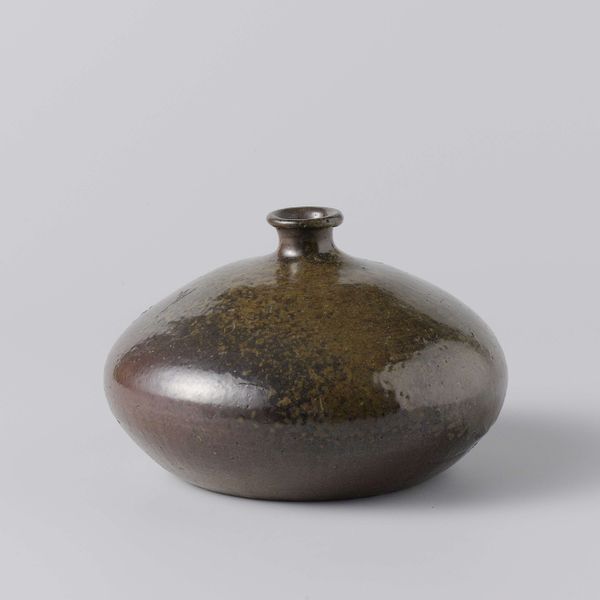 This is G.H. Lantman's round box with a lid. Immediately, we're drawn to its compact geometry – the perfect circle of its form, softened by a subtle, almost imperceptible swell of its base. The dominant hue is a muted, aged bronze, which gives it a timeless feel. What truly captures the eye is the intricate detailing on the lid. It's a dense tapestry of floral motifs, meticulously etched. The contrast between the plain body and the ornamented lid creates an intriguing visual tension. But consider this object within the context of structuralism. The box as a container becomes a signifier. What does it mean to enclose? What secrets does it hold? The lid, with its decorative excess, adds another layer of semiotic complexity. It speaks to ideas of value, ornamentation and the hidden depths beneath surface appearances. This work challenges us to consider how an everyday object can become a site of profound aesthetic and cultural meaning.