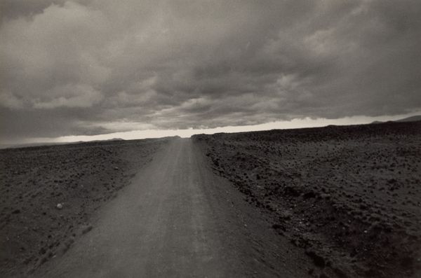 Editor: Here we have an untitled photograph by Tracey Moffatt. I’m struck by the starkness – the figure crawling on the road, the looming car. What’s your take? Curator: It throws me right into the dust and desperation of it all. Moffatt has this incredible way of conjuring stories, even if fragmented. It's a scene ripe with tension, isn't it? I keep wondering about the relationship between the figure and the car… Editor: Right? Is it about power, vulnerability, or something else? I guess it’s up to us to imagine… Curator: Exactly! And that’s Moffatt’s genius, isn't it? She gives us a world and invites us to wander, lost and hopefully wiser.