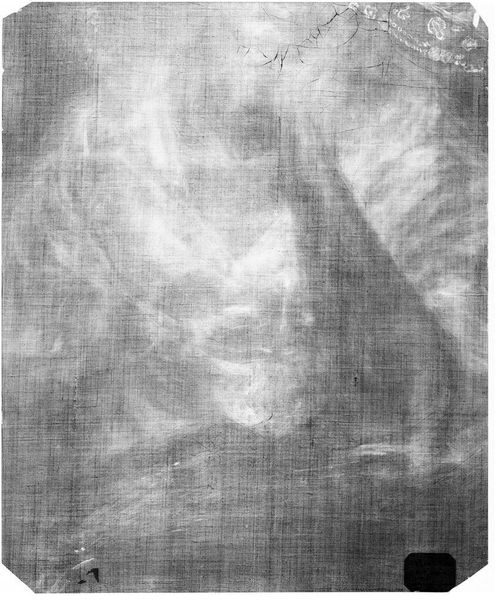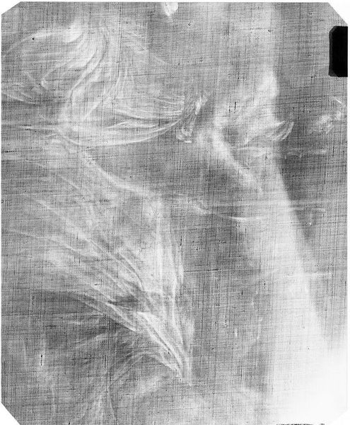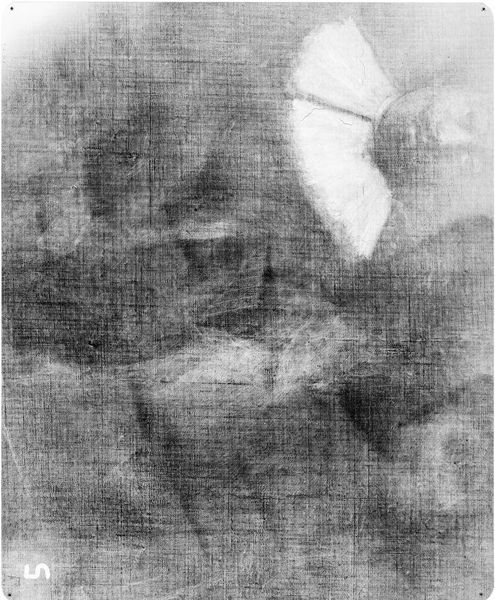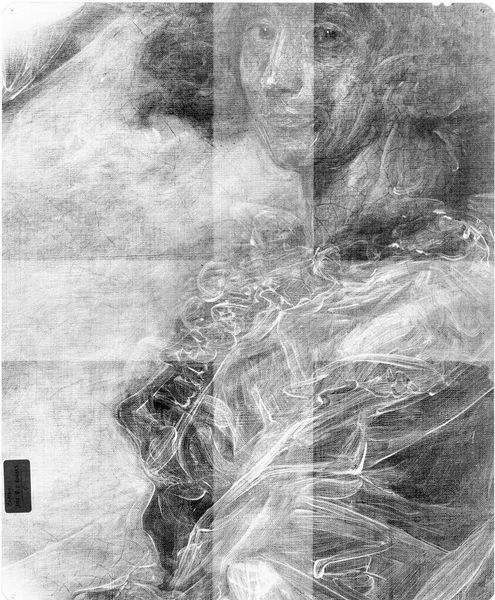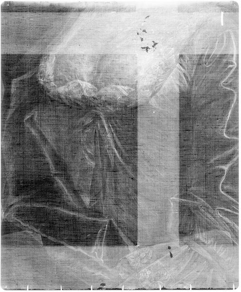 Curator: This is an X-radiograph of what is believed to be a portrait of Judith (Rawlins) Gayton, potentially by John Smibert. Striking, isn't it? What catches your eye first? Editor: It’s like seeing a ghost, but of an artwork itself. The hands are so delicate, even in this skeletal form, reaching… for something? Curator: It’s fascinating how the X-ray reveals the density of the paint and materials used. Notice the areas where the artist layered pigment, perhaps suggesting emphasis or changes made during the painting process. Editor: It makes me wonder what secrets lie beneath the surface of all paintings, the hidden narratives and artistic choices invisible to the naked eye. Curator: Indeed. It makes us think about the nature of portraiture and memory, doesn't it? Even in its most hidden form, the essence of Judith Gayton is still present. Editor: Absolutely. It's like a visual echo, reminding us of the layers of meaning and history embedded within art.