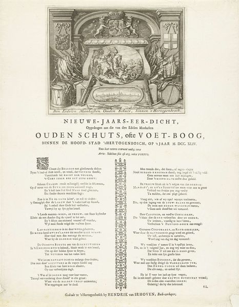 This is a New Year's greeting from the Amsterdam newspaper deliverers for the year 1856, printed anonymously. The broadside format speaks to a time when print was a primary means of mass communication, but access to information was far from equal. Consider the labor and social standing of these newspaper carriers, likely working-class individuals whose livelihoods depended on the dissemination of news. How did their position shape their interaction with the city and its inhabitants? The text, dedicated to the city's residents, offers a glimpse into the aspirations and concerns of this community at the dawn of a new year. The verses reflect a desire for prosperity and well-being, interwoven with expressions of civic pride. As you examine the illustrations and text, think about the role of media in shaping public opinion and the lives of those who brought the news to the doorsteps of Amsterdam.