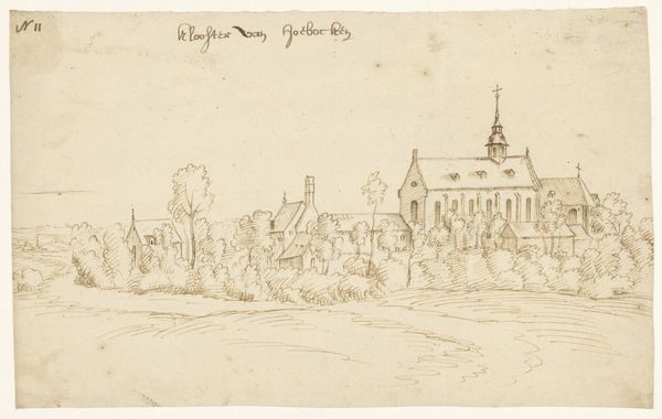 This sketch, made by H. van Wel, depicts the Roosendael monastery in Walem amidst lush trees. Dominating the structure is a cross atop the steeple, an ancient symbol predating Christianity, representing the intersection of the divine and earthly realms. Observe how this cross, a beacon of faith, echoes across cultures and epochs. In ancient Egypt, the ankh symbolized life, its looped form later adopted by early Christians to represent eternal life through Christ. This symbol evolved, its vertical and horizontal lines merging into the Latin cross that we see here, signifying sacrifice and redemption. The architectural setting itself invites contemplation on the cyclical nature of sacred spaces. Across millennia, humans have erected temples and monasteries, imbuing them with spiritual significance. The impulse remains, reflecting our innate need to connect with the divine and grapple with the eternal mysteries of existence. The past is always present, subtly guiding our perceptions and interpretations.
