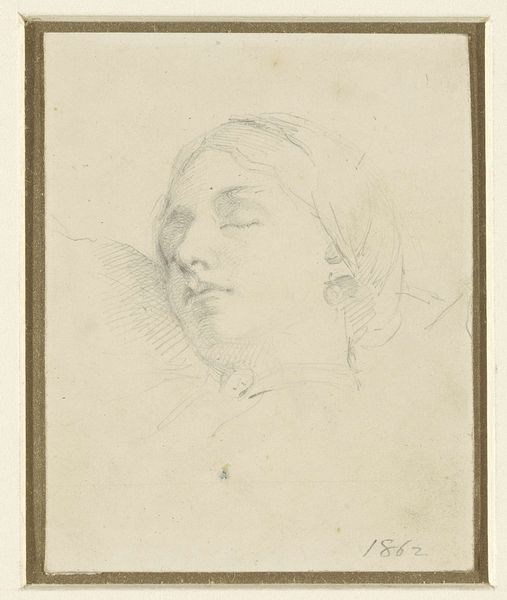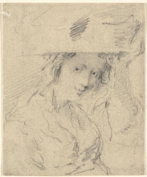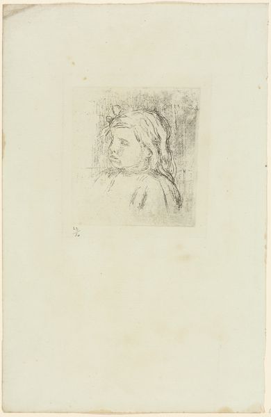 Editor: This is Philip Leslie Hale's "Study of a Girl," a pencil drawing from between 1887 and 1920. There's a gentleness to the way the artist captured her, an almost wistful quality. The gaze seems both direct and distant. What do you see in this piece? Curator: The first thing I notice is the duality inherent in this portrait, seen not just in her expression, as you pointed out, but also in its composition. We have this fully rendered face, a hand barely sketched, and what appear to be fragmentary studies lower on the page. Hale seems to be exploring ideas, but also referencing established traditions of portraiture. Do you get a sense of artistic exploration mingling with conventional imagery? Editor: I do, especially how the sketch feels like an intimate glimpse into the artist's process. But what kind of symbolism or cultural memory do you see here? Curator: Well, the girl's downward glance might signify introspection or even vulnerability – concepts that resonate throughout centuries of female portraiture. This ‘downcast eyes’ trope is prevalent in art history, think of depictions of Madonnas or even some Pre-Raphaelite heroines. How might societal expectations play into how Hale is showing us this young woman? Editor: That's fascinating – I hadn't considered how gender roles could be embedded within the image itself, informing its reception. Curator: Exactly! Even the unfinished elements contribute. The fragmentary studies could be seen as symbols of impermanence, reminding us of the fleeting nature of youth and beauty, concepts prevalent in art across time. Editor: I learned so much! Thank you! Curator: It's been a pleasure. It's always rewarding to revisit how cultural symbols constantly shift and influence our experience of art.