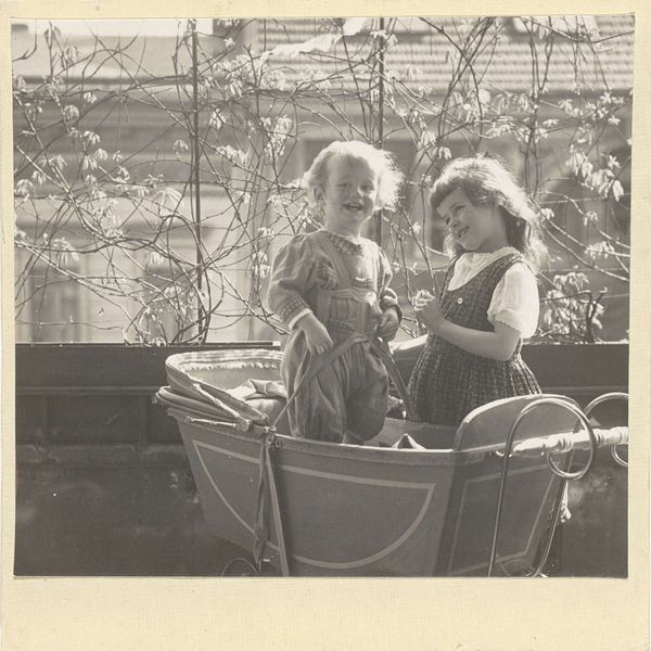 Curator: This small photograph, titled "Untitled (fraternity dance, woman sitting on man's lap)," presents an intimate yet ambiguous scene. The artist is listed as Jack Gould. Editor: The immediate impression is one of youthful energy. The stark contrast in this small silver gelatin print creates a sense of heightened emotion. Curator: It’s intriguing how the reversed tones almost give it a dreamlike quality, distorting the common symbolism of dark and light. The woman in the man's lap evokes the Madonna and child, but inverted, perhaps alluding to an uncertain future. Editor: For me, the photograph’s power lies in its unpretentious materiality. Its small size emphasizes the ephemeral nature of photographic documentation, a fleeting moment captured with simple tools. Curator: I find that reversal unsettling yet fascinating. The image invites us to reconsider how we interpret familiar archetypes within the context of youth and societal expectations. Editor: It’s remarkable how Gould uses simple means—this small print—to capture a specific social moment, revealing underlying assumptions about gender roles and social rituals.