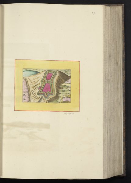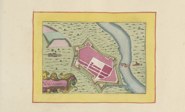 This anonymous map, titled ‘Gezicht op Anduze,’ was made using a combination of engraving and hand-coloring. The process begins with an engraver using specialized tools to carve lines into a metal plate, which is then inked and printed onto paper. What sets this map apart is the addition of color, applied by hand, probably by trained artisans. Note the pink fortifications, the carefully distinguished agricultural fields, and the yellow border that gives the image its frame. This division of labor—the engraver creating the base image, and the colorist adding vibrancy—speaks volumes about the economics of mapmaking at this time. It suggests a workshop setting, with individuals specializing in different tasks to efficiently produce these detailed views. The careful, consistent application of color also indicates that the map wasn’t just a utilitarian object, but one intended for display and appreciation.
