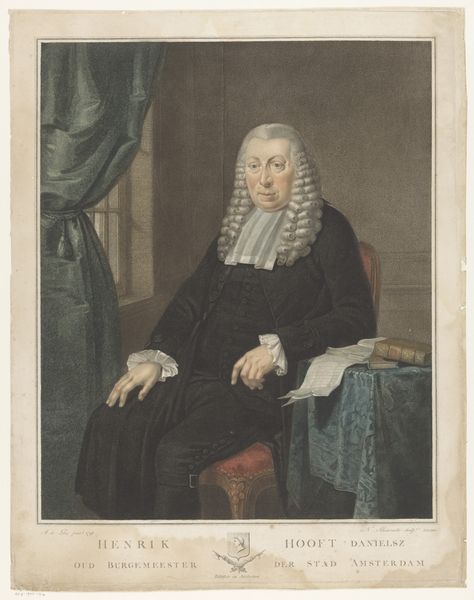 Curator: This is an engraving titled “Georg Christi Knapp,” created in 1817 by Friedrich Wilhelm Bollinger. It’s part of the Rijksmuseum collection. What's your immediate reaction to it? Editor: Austere, isn't it? Almost monochromatic in its tonality, which emphasizes the somber mood and… restraint. Curator: Indeed. Consider the lines. Notice the careful detailing in the drapery and the precise rendering of Knapp's features. There's a clear engagement with neoclassical principles. Look at how the light is used to model the form, almost sculpturally. Editor: But that austerity reads as something else to me, considering Knapp’s historical role. As a professor of theology during a time of social upheaval, that sombre mood maybe a signifier of political realities and religious contemplation during periods of conflict. Curator: An intriguing interpretation. From a formalist standpoint, the placement of the book invites an intellectual reading, doesn't it? The sitter is posed thoughtfully; we should look at the composition to investigate themes around the intellectual nature of Knapp's pursuits. Editor: Well, think about access to theological education at the time; I cannot disconnect the book, and the overall impression of scholarship, from matters of social privilege. Who had access, who was excluded and why? A seemingly straightforward portrait opens into layers of cultural power, wouldn't you agree? Curator: The image undeniably projects authority. The sitter gazes outwards; its purpose is representational of position and power. The interplay between the textures—the smoothness of his face against the folds of his robe—draws the eye in different ways. Editor: The visual rhetoric serves a function. Was Knapp viewed as progressive, perhaps? We can assess from the composition alone. And his legacy—did it challenge existing norms, or perpetuate them? That robe could symbolize solidarity, or continued suppression. It depends. Curator: Thank you for contextualizing the historical setting of this very skilled portrait engraving, considering the intersections between history and person. I had only considered that his hand draws your eye towards the implied thoughts occurring. Editor: Absolutely. It's by placing historical images into our own frames of reference and lived experiences that will challenge contemporary perceptions and further analysis.
