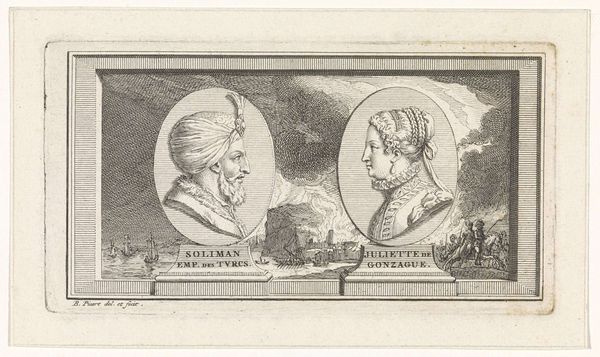 Editor: This is an engraving entitled "Medaillons met portretten van Pericles, Fabius Maximus, Alcibiades en Coriolanus" by Reinier Vinkeles, dating from 1789 to 1809. It feels... well, really serious. Stiff upper lip, the whole bit. What jumps out at you when you look at this work? Curator: Immediately, I'm struck by the weight of history, but also by its staged, almost theatrical presentation. These aren't just portraits, are they? They are performances of power, carefully crafted and arranged like characters on a stage. The severity you noted speaks to the era's reverence for classical ideals. What if we considered that, by creating it as an engraving rather than sculpture, Vinkeles could disseminate classic ideals wider? Editor: So, it's about influence and distribution, not just representation. The portraits are strikingly similar in style, almost like mass-produced imagery despite depicting very different figures. Does that lessen their individual impact? Curator: It does present a paradox, doesn’t it? Individuality is subdued to elevate overarching principles of leadership. Look closer at the background. How does that Doric-inspired backdrop alter your perception of those ideals? Editor: Now that I’m looking at it, it feels like these medallions could be on a Roman ruin in the 18th century... a way to frame these ideals in this period. Curator: Precisely! It invites viewers to situate themselves within a lineage of greatness. This work makes me consider how societies invent the past they want, the heroic narratives they feel they need. This artwork also reminds me that we can examine what our artistic legacies truly convey. Editor: That’s so true, it also highlights what is absent from the heroic narrative. Thank you, that gave me a new way of seeing this!