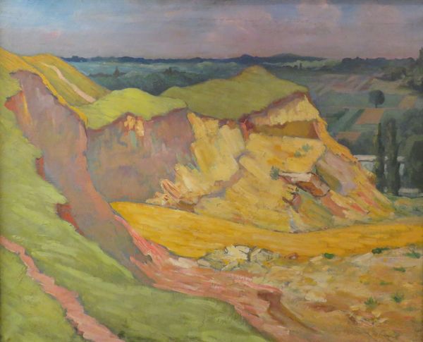 Andre Derain painted "Valley of the Lot at Vers" with what looks like oil on canvas, and you can really see the marks of his brushstrokes. It's like he's inviting us into his process, showing us how he built this landscape. Look at the way he uses color to define the shapes of the hills and cliffs. The paint isn’t too thick but it is opaque. There's this one spot on the cliff to the left where he's layered different shades of brown and grey, creating this sense of depth and texture. It's almost like you can feel the roughness of the rock. It makes you wonder what kind of brushes he was using and how quickly he was working. This piece reminds me a little of Cezanne, but with a wilder, more expressive energy. It shows how art is like a conversation, with artists borrowing ideas from each other and pushing them in new directions. It leaves so much space for interpretation.