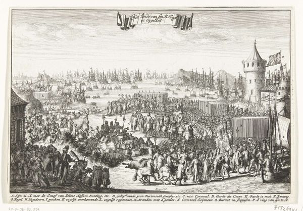 This etching, circa 1688, by an anonymous artist, commemorates Prince William's arrival at Exmouth. Observe the flags held high, symbols of allegiance and national identity, their fluttering fabric echoing a sense of collective fervor. Consider how such banners have evolved from ancient Rome's vexillum to medieval heraldry, each iteration a vessel for cultural memory. The waving flag is a potent means of visually unifying the crowd, triggering a sense of belonging and shared purpose. We see echoes of victory celebrations in ancient triumphal arches; such joyous reception motifs recur throughout history. The image exudes optimism, but it is important to consider it within the context of upheaval. Such demonstrations often serve to reinforce social bonds during uncertain times. The arrival of a leader, and the hope for stability, is a recurring theme in the theater of human history.