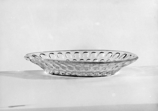 Editor: Here we have a glass Footed Dish, crafted between 1885 and 1888 by the Richards and Hartley Flint Glass Company. Its repetitive pattern almost gives it a bubbly, joyful aesthetic. What stories does this dish hold, beyond its aesthetic appeal? Curator: Well, looking at this object, I see more than just a decorative dish. I see a reflection of class, labor, and consumer culture in the late 19th century. Flint glass production involved intense labor, often exploited, while the finished product was destined for bourgeois homes, intended to signify status and good taste. Who was benefiting from this production and at what cost? Editor: That makes me think about access—who could afford to purchase such items, and what did that say about society at the time? Curator: Exactly. It prompts us to question the societal structures that placed value on such displays of wealth. Consider how the rise of industrial production impacted both the availability of these objects and the lives of the workers creating them. This dish might be pretty, but it is part of a larger story of labor exploitation and capitalist expansion, impacting women, people of color and immigrant communities especially. Editor: So it becomes an object that silently tells a complicated, even troubling story about a specific era. Curator: Precisely. It makes us think about whose labor went into this, and how they were affected by its creation. Art history has to engage with critical social issues. What do you think about the function of decorative items like this in today’s world? Editor: I see a constant tension between our appreciation of its aesthetic, its visual texture, and its deeper contextual meaning, what it really symbolizes when we interrogate its social history. Thanks for that insight. Curator: It's been enlightening for me too, thinking about how this single object represents broader issues of class and labor.