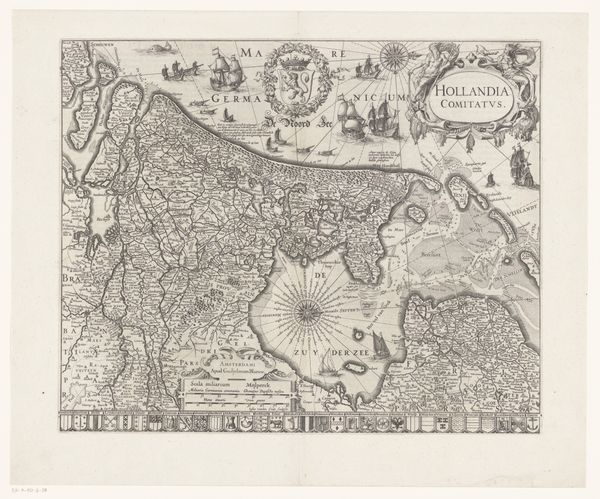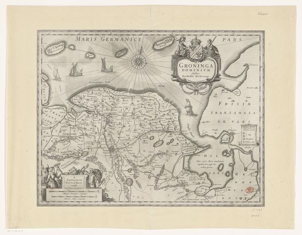 Curator: Here we have "The Siege of Grol by Frederik Hendrik, 1627," created by Claes Jansz. Visscher. It's an engraving, meticulously rendered in ink on paper. My first impression is that it conveys a sense of intense control, almost sterile in its precision. Editor: Indeed. I see it as a stark reminder of the realities of 17th-century power dynamics in the Netherlands. Grol, now Groenlo, was under siege—a battleground in the Eighty Years' War, part of the Dutch struggle for independence from Spain. Visscher's map isn't just a document; it's a depiction of oppression, an attempt to exert territorial control through strategic visual representation. Curator: Consider the composition. Visscher utilizes a bird's-eye view, a deliberate choice to survey and map the entire siege. Notice the sharp, clean lines delineating fortifications and troop placements; he constructs a rational, almost mathematical rendering of conflict. The various elements are contained neatly. Editor: But that supposed "rationality" only serves a particular agenda. The map glorifies military prowess while simultaneously minimizing the human cost of war. Who does it serve? The victors, obviously. What about the lived experiences of the people of Grol? Or the soldiers forced into this conflict? Curator: Semiotically, these fortified shapes are not neutral; each symbol possesses a definite militaristic purpose, directing viewers toward an understanding of power. Visscher uses signs—literally lines and strategically placed forms—to direct how the scene must be understood. Editor: Absolutely. And those signs are loaded with ideological meaning. A key question emerges: Who gets to produce these representations, and whose voices are being suppressed? Consider that women, working-class people, and those deemed "enemies" would likely not have their stories memorialized or given significance in accounts like this. This is visual propaganda that excludes many narratives and histories. Curator: I recognize that historical conditions bear directly upon its creation and reception, and further contribute meaning. However, I remain absorbed with the pure design of this composition, it seems expertly calibrated to me. Editor: I agree, the rendering shows artistry; I am less inclined to view it merely as an aesthetic or formal statement independent of its history. Visscher gives us this plan; the rest of us can attempt to decode his decisions through both artistic and ethical terms. Curator: By studying his graphic approach to space, we appreciate a certain style that is quite characteristic of its period. Editor: Indeed, its legacy remains culturally complex. Let us proceed to the next artwork, then.