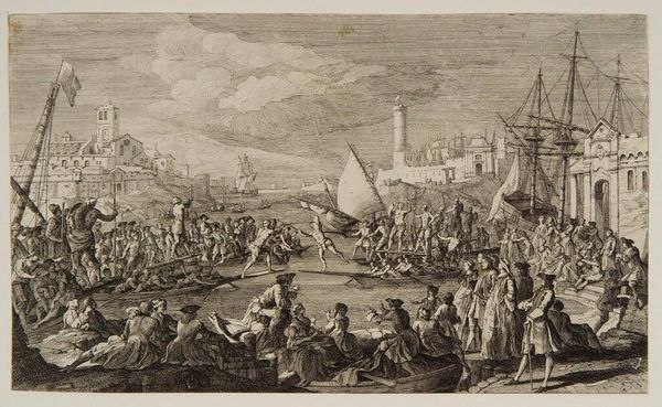 Arnold Frans Rubens painted this winter scene on canvas, likely using oil paints, sometime between 1687 and 1719. The artist has carefully layered the paint to capture a range of textures, from the smoothness of the ice to the rougher surfaces of the tents and clothing. Note how the subtle gradations of tone evoke the cold, crisp atmosphere of a winter day. Rubens would have mixed his own paints, grinding pigments and combining them with oils. This hands-on process was typical of the period, requiring considerable skill and knowledge of materials. The finished painting would have been a valuable commodity, reflecting not only Rubens' artistic talent, but also the labor involved in its creation and the materials that went into it. It is important to remember the value of Rubens’ time, and also how his creative process has imbued the artwork with social and cultural significance. The material record of the painting—its pigments, canvas, and the artist's touch—speaks volumes about the society that produced it.