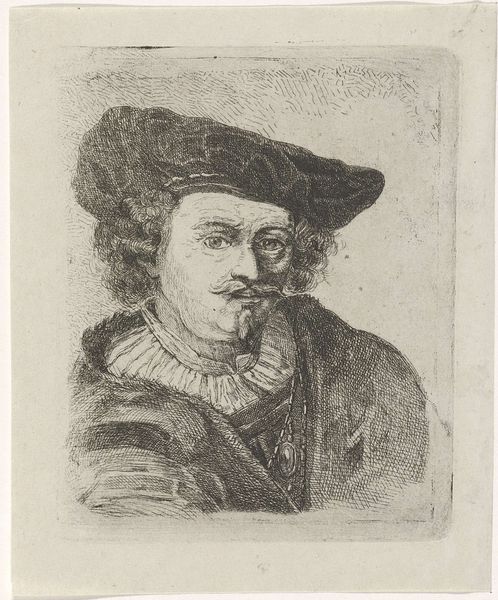 Hendrick Goltzius created this drawing of Gillis van Breen in the late 16th century with chalk and pen. Van Breen is depicted with an elaborate millstone collar. This fashion accessory of the European Renaissance initially began as a modest ruffle at the neckline of shirts and blouses. Over time, these ruffs grew exponentially, becoming status symbols for the wealthy. Similar to other circular motifs throughout art history, such as halos, mandalas, and wreaths, the ruff denoted high status and moral virtue. Looking back to antiquity, the circle has been a symbol of wholeness, eternity, and cyclical return, which suggests how deeply ingrained these symbols are in our collective consciousness. In this portrait, the ruff serves to frame the face, drawing attention to the subject's identity and character. This portrait of van Breen not only captures the likeness of a man, but engages us on a deeper level, echoing across time and culture.