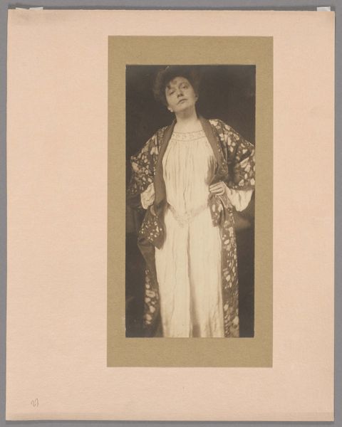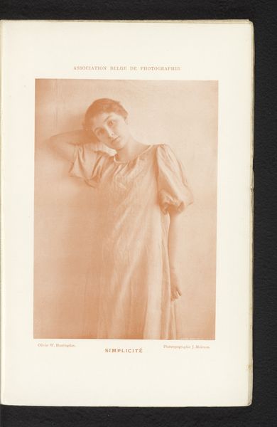 Maurice Bucquet made this small portrait of an unknown girl sometime around the turn of the 20th century, likely using a gelatin silver process on photographic paper. Photography had by this time become a thoroughly industrialized affair, involving specialized chemistry and equipment. This was also the era in which consumer culture really took hold, and photography played a key role. Though presented as an intimate portrait, this image is also an advertisement for the clothing, textiles, and accessories that the girl is wearing. The patterned shawl, the puffed sleeves, even the book, are all presented as desirable objects. Bucquet made many such photographs, mostly of actresses and other celebrities, and it's tempting to see this girl as aspiring to that status, or perhaps preparing for a stage role. Either way, photography had become the perfect medium for projecting identity, in a society that was more and more obsessed with its own image. It is a portrait that blurs the boundary between commercial and fine art.