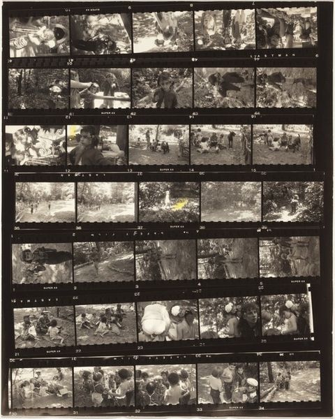 Robert Frank shot this film strip, "Family in Provincetown 2," using, well, film! The whole roll becomes an artwork, like a storyboard, a bunch of images all kissing each other. It's like Frank's saying, "Here's everything, take what you want, it's all connected." The high contrast, the grain, it's like he's digging for something raw. Check out that image of the kid in the hammock, circled as if especially meaningful to someone. The starkness of the black and white adds a layer of seriousness, a kind of documentary feel, but then the kid is just chilling, right? It's that push and pull that gets me. Reminds me a little of Garry Winogrand, that grab-it-and-go energy, and the desire to capture real life, unvarnished, because in life the most interesting things happen by chance!