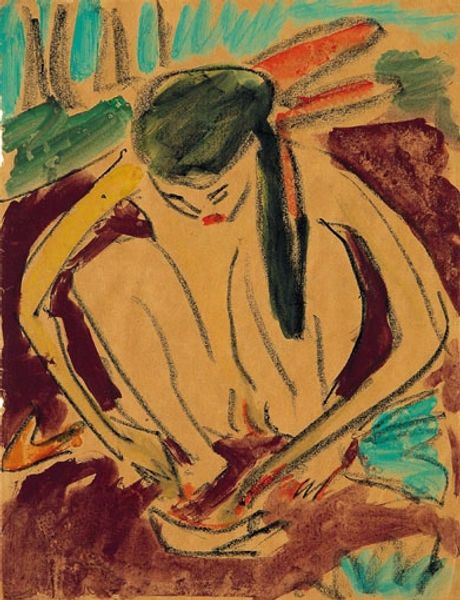 Curator: Standing before us is Pierre Bonnard's "Sitting Woman with a Cat," a tantalizingly slender oil painting dating back to 1898. The elongated form reminds me of Japanese Kakemono scrolls. What’s your first impression? Editor: Intriguing. There's a muted dreaminess about it, a tender, quiet melancholy almost. The woman is so withdrawn, as if guarding a secret. It’s also intensely decorative, but there's more going on here than surface design. Curator: Absolutely. Bonnard was deeply immersed in Intimism, capturing these quiet, personal moments. You sense the influence of Orientalism here as well. Notice the flattened perspective, almost like a screen or a textile. How might the cat function as an emotional signifier? Editor: The cat... coiled, dark. There is the obvious symbolic link to feminine mystery, perhaps a hint of the sitter’s darker or perhaps simply independent nature. Also, the background and surroundings create a symbolic mood, adding to a sense of a cloistered domestic world and its patterns, both decorative and behavioral. I see the repeated motifs—floral, feline—as external expressions of internal states. Curator: Very insightful! The pattern almost seems to vibrate around the still figure, like a halo or a psychic emanation. Bonnard wasn’t interested in straightforward representation but in capturing subjective experiences. Editor: Which he certainly did. One cannot help but feel like an accidental voyeur, peeking into someone’s most cherished yet unspoken inner realm. It’s quite psychologically loaded, considering its quiet presentation. There’s so much being withheld by the sitter. She seems like a character lifted from a poem. Curator: Agreed, this piece feels simultaneously deeply personal, intimate, and strangely unknowable. The decorative flatness clashes delightfully with that unspoken psychological complexity. I keep circling back to her eyes - how could such detail convey so much in such subtle a fashion? Editor: It is beautiful how those lines, so simple and gestural, evoke a whole interior landscape. As time passes, and our perceptions and feelings towards this image grow and adapt, the artwork transforms within our consciousness. Curator: Yes, each engagement births something entirely novel - something like the tail of that mischievous cat!