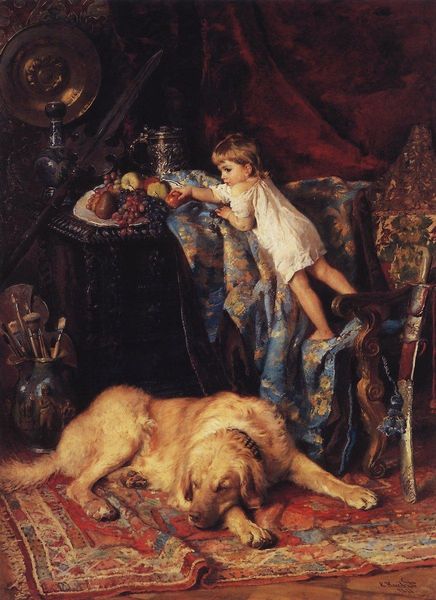 Norman Rockwell painted "Lazybones" in the style that solidified him as one of America's most beloved artists. Rockwell painted a vision of America that emphasized traditional values. In this image, a young boy sleeps, his dog resting against him, a neglected shovel at his bare feet. The scene resonates with a sense of carefree idleness, yet we might also consider it as a commentary on labor, and the privilege to avoid it. Consider the historical context: Rockwell’s career spanned world wars and economic depression. Rockwell's images often reflect an ideal rather than the lived experiences of many. Who had the luxury to be 'lazy'? Who was excluded from this vision of American life? Consider the complex narratives of work and leisure, and the varied access to the American dream.