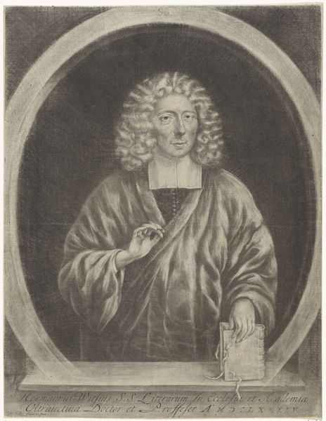 Editor: Here we have Caspar Netscher's "Portrait of Johan de Witt," created between 1642 and 1684. It's an engraving, a print. It strikes me as a very formal, stately portrait, almost as if de Witt is consciously projecting an image of power. What do you see in this piece? Curator: It’s more than just a stately portrait; it’s a deliberate construction of power, yes, but let’s consider the historical context. De Witt was a hugely influential figure during the Dutch Golden Age, but his political trajectory and ultimate demise were steeped in factionalism. How does Netscher’s portrayal engage with these competing narratives about de Witt's role? Editor: That's interesting. I hadn't thought about the factionalism. So the way he’s posed, the clothing… it’s all carefully chosen to project a specific idea of who he was? Curator: Precisely. The opulent robe, the setting…they all reinforce an image of authority and sophistication. But, knowing that this image was made and circulated during a time of intense political conflict, it begs the question: who was this image *for*? Was it an attempt to consolidate power, or perhaps a form of posthumous rehabilitation after his grisly assassination? Editor: So, the portrait becomes less about capturing his likeness and more about controlling his image and legacy. Curator: Exactly! And how that legacy continues to impact interpretations of Dutch identity and power dynamics even today. Who gets remembered and how? Who controls that narrative? Editor: This makes me realize that portraits can be really powerful forms of political statements. I never thought of them that way before! Curator: And now you can consider art through that lens. That’s the first step in unpacking how historical events are seen through a work of art.