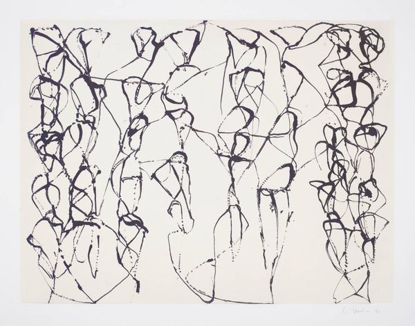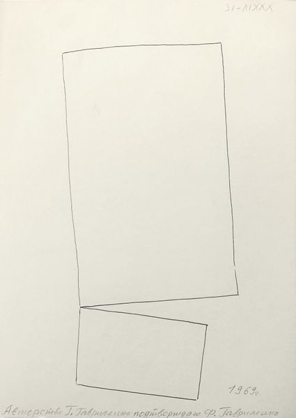 Curator: I’m immediately struck by the quiet simplicity of this drawing, its division into two distinct registers, each filled with abstract forms. Editor: Today, we're examining “Two Compositions,” a drawing by Hryhorii Havrylenko, currently held in a private collection. Sadly, its exact date of creation is unknown. The artwork consists of ink on paper. Curator: The composition reminds me of architectural renderings or maps; one wonders if this simplicity was driven by available materials in the Soviet system or an intentional engagement with Constructivist principles emphasizing utility and function. Editor: It's fascinating how Havrylenko uses simple lines to suggest form and depth. Look at how he segments space, almost like shattered glass, creating an interplay between positive and negative space. There's an interesting ambiguity between landscape and pure geometric abstraction. It recalls Analytical Cubism and the reduction of objects into basic shapes. Curator: But is this just formal play, or is it something more? I’m wondering, looking at its seeming duplication as if looking into a mirror, whether the division also represents political realities in Soviet Ukraine? We might also ask what other works of this era used geometric abstraction to engage in veiled commentary on surveillance? Editor: That mirror imagery does raise the question of replication, but in terms of aesthetic experience, note the contrasting textures within the similar frameworks. One section's jagged edges provoke a nervous dynamism. At the same time, the lower register feels weightier, perhaps alluding to a landscape or topography, don't you agree? Curator: It's tempting to interpret the heaviness as reflective of socio-political oppression during the Soviet era, bearing in mind artistic censorship in Ukraine at this time. Editor: Perhaps. Though as a piece it creates such tension, its austerity and sharp contours somehow create space. Curator: Considering the historical setting truly reframes my perception of its composition, providing more historical depth. Editor: And for me, focusing on those elements makes the work all the richer when approaching socio-cultural factors in understanding such drawing from then until now.