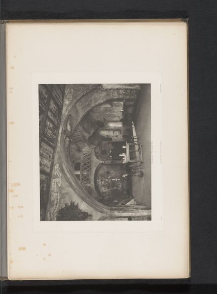 Curator: Today we’re looking at an image from 1886 of the Forth Bridge construction. It is labeled ‘One of the great 12 feet tubes, inside of same,’ captured in a gelatin silver print. It documents a monumental feat of engineering during its era. Editor: Monumental is the right word! The photograph gives a shiver of something colossal—like looking into the throat of some steampunk beast. There's a real dizzying, spiraling depth, and then a delicate, fragile light at its end. What does the ‘12 feet’ signify here? Curator: Well, ‘12 feet tubes’ refers to the diameter of the hollow steel cylinders that were integral structural components for the bridge. These tubes are vital to distribute loads efficiently. The interior shot exposes their ribbed construction with precise joining work, providing insights into structural reinforcement techniques adopted. Editor: It is not only impressive structurally but compositionally as well. The repeated circular forms make my eye spiral inward like water going down a drain—an unsettling but interesting feeling. Curator: The photograph, created anonymously, also makes several interventions on our understanding of industrial advancement. Notice, first of all, the high degree of planning but the low concern with security. It creates almost like a portrait of British labor practices back then—simultaneously diligent and exploitative. Editor: Absolutely. And I imagine those tubes felt infinite. Like those optical illusions of corridors that get smaller and smaller forever and ever. Being inside one must have been quite an experience—part sanctuary, part metal coffin. The way the image exaggerates that effect through linear perspective is… hauntingly beautiful, actually. Curator: Well said. When viewed from our current historical moment, these photographs serve to help remember the grand scale on which Britain transformed transportation technologies—with repercussions extending beyond just transport to cultural representation. Editor: Yes, precisely, and it is the strange allure between beauty and death, fragility and strength that elevates it, I think. The Forth Bridge then isn't only an emblem of industrial progression; rather an accidental stage where something profoundly emotive can occur—as reflected through our anonymous artist's view behind his camera.