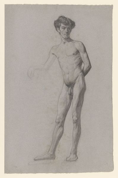 Henri-Guillaume Chatillon rendered this drawing, titled 'Apollo or Adonis', with delicate strokes on paper. The sculpture-like figure, youthful and nude, evokes classical ideals of beauty. Consider the implicit nudity, a symbol of vulnerability and purity, deeply rooted in classical antiquity, where the unclothed form represented heroic virtue. The body stands unashamed. We see this same unashamed representation in Renaissance depictions of Adam and Eve. The placement of the figure beside the tree trunk suggests an earthly connection, reminiscent of Adonis, whose life and death were intertwined with nature's cycles. His sorrowful countenance reminds us of the profound emotional resonance embedded in such imagery—a mirror reflecting humanity’s eternal dance with mortality. The image resonates with motifs that continually resurface, reflecting our enduring fascination with the human form, beauty, and our connection with the natural world.