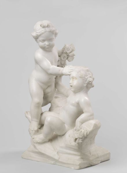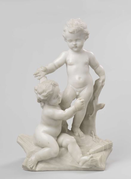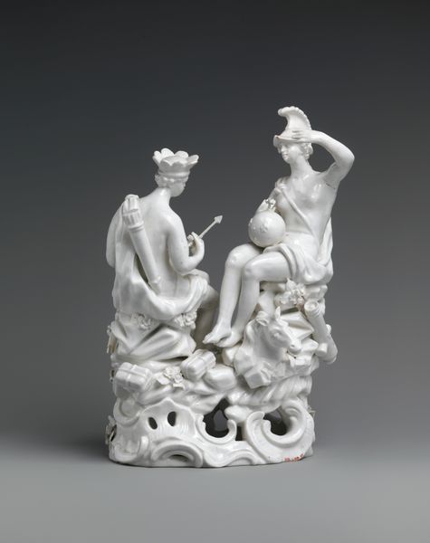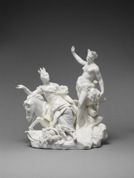 This is Hercules and Omphale, made of soft-paste porcelain at the Vincennes Manufactory in France around 1752. It depicts a scene from Greek mythology, where the hero Hercules is serving Queen Omphale as punishment for a crime. The sculpture is a product of its time, reflecting the Rococo style and the social values of the French court. The Vincennes Manufactory, later known as Sèvres, was closely associated with the French monarchy and catered to the tastes of the aristocracy. The choice of subject matter, with its emphasis on love, pleasure, and the power of women, would have appealed to the courtly audience. The mythological subject serves as a commentary on the social structures of its time. Understanding this sculpture requires examining the historical context in which it was made. Researching the patronage of the Vincennes Manufactory and the cultural values of the French court can provide insights into the artwork's meaning and significance. Art is contingent on its social and institutional context.