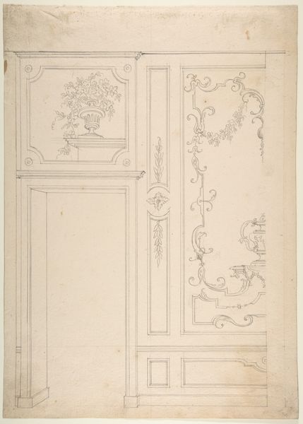 Jules-Edmond-Charles Lachaise designed this pencil on paper drawing entitled "Design for the painted decoration of a rooms walls and ceiling". Lachaise's design presents a fascinating look at the intersection of gender, class, and artistic expression in interior design. During the late 19th and early 20th centuries, interior spaces were often meticulously crafted to reflect the social status and aesthetic preferences of the inhabitants. Lachaise, working within this tradition, offers a glimpse into the decorative elements that would have adorned the homes of the wealthy. The design suggests a space intended to convey refinement and cultural sophistication, but it also underscores the gendered nature of these spaces. The delicate floral motifs and curvilinear patterns often associated with femininity, speak to the perceived roles of women as keepers of the domestic sphere. By examining the artist’s choices, we can explore the ways in which art and design have historically reinforced societal expectations and power dynamics, subtly shaping the identities of those who inhabited these spaces.