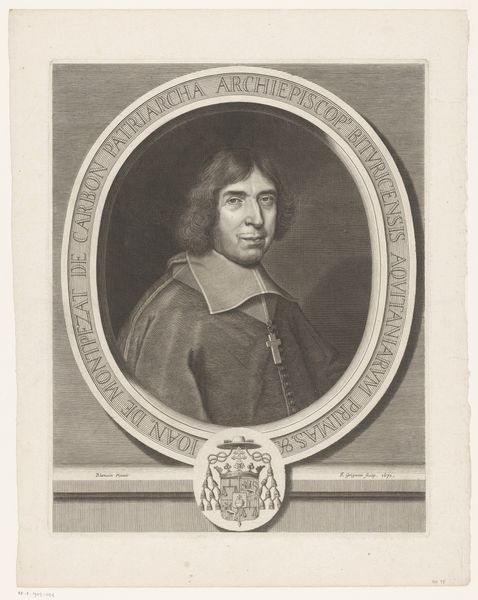 Jean Lenfant rendered this portrait of Gui de Sève de Rochechouart in ink and graphite. The most striking symbol is undoubtedly the family crest at the bottom. Flanked by two nude figures, the emblem suggests not just lineage, but the embodiment of power and authority, a visual claim to historical significance. The presence of these figures echoes classical antiquity, where the nude form represented heroism and ideal beauty. Yet, their support of a distinctly Christian heraldry creates a fascinating tension, a visual dialogue between pagan ideals and Christian authority. Consider the recurrence of such figures throughout art history. From Michelangelo’s David to the countless depictions of Adam and Eve, the nude form has served as a canvas for societal values and subconscious desires. The composition, framed within an oval, suggests a cyclical, non-linear progression, hinting that such symbols resurface, evolve, and take on new meanings across different contexts, engaging viewers on a deep, subconscious level.