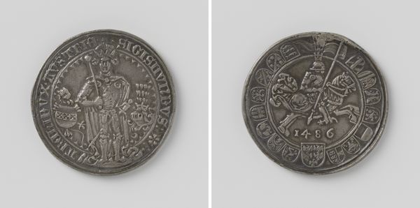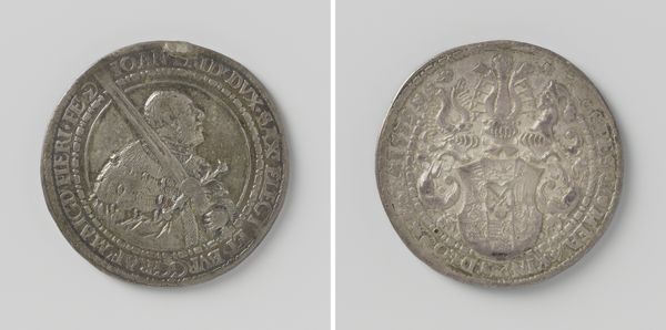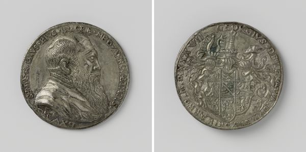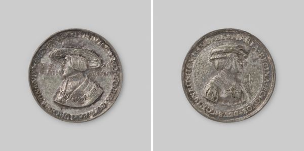 Editor: Here we have a metal relief sculpture, a portrait of "Albert, hertog van Beieren," created by an anonymous artist in 1507. It's currently held at the Rijksmuseum. I'm immediately struck by the details achievable in metal at that time. How would you interpret the artistic decisions and materials in this piece? Curator: Well, let's think about what a metal relief portrait meant in 1507. It wasn’t just a pretty picture. Consider the production. Crafting this from metal, likely silver or a similar precious material, signaled wealth and power. This object speaks volumes about the Duke's desire to be perceived as a strong, enduring ruler. Editor: So, the very material becomes a symbol of status and permanence? Curator: Exactly! And the relief format is important. Unlike a painting, this is tactile. People would have handled this, felt the weight and the coldness of the metal. It’s an object to be possessed, circulated, a very tangible assertion of power. Editor: That makes me think about the role of labor in creating the piece, and how that’s invisible when we just consider the portrait itself. Curator: Precisely. The skill and time required to produce such a piece were significant investments, showcasing not only Albert's wealth but also the skilled craftsmanship available in his realm. How might circulation and value operate in this society, using craftsmanship to validate currency and social standing? Editor: It gives a completely different perspective to consider art in relation to material and economic conditions. Curator: Indeed, it’s not just about aesthetics, but about the entire system of production and consumption that supports it.
