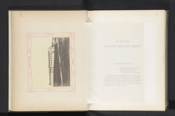 Curator: This albumen print by William Savage, likely created before 1868, is entitled "Gezicht op het slaapvertrek van St. Cross Church te Winchester"—or, a view of the St. Cross Church dormitory at Winchester. Editor: Immediately, the stark repetition of the chimney stacks strikes me—the tonal variation achieved in this monochromatic print makes it incredibly striking. There's a strong emphasis on the linear here. Curator: Yes, Savage has skillfully employed the photographic process to draw attention to the architectural rhythms inherent in the structure. Observe the way he manipulates light to delineate form—each chimney almost a distinct character in this architectural narrative. The print's physical presence, set against the album page, accentuates its formal qualities. Editor: Churches, and their accompanying structures, often act as symbols of stability, community, and perhaps even timelessness. But looking closer at these individual dwellings—perhaps monastic cells—they evoke the more private realms of contemplation. One can almost imagine the lives contained within those walls, each dwelling a space of individual devotion. Curator: Intriguingly, Savage's choice to focus on these 'sleeping quarters', or dormitories, prompts questions about privacy and communal living within a religious context. He's intentionally avoided the grandeur of the church itself, favoring these humble chambers. Editor: Precisely. The shadows and sharp lines could even be said to hold psychological weight—almost like looking at an architectural encoding of emotional boundaries between communal spirit and introspection. The photograph then exists in the realm of cultural memory; as a symbol, this image serves as a study of cultural themes like spirituality. Curator: That’s a compelling point—ultimately the photograph’s meticulous capture of form guides my reading, framing it more so as a study in contrasts and light within established spatial constructs. Editor: A striking composition, whichever lens one chooses. Curator: Indeed; a fruitful meditation on space, light, and architectural forms.