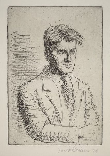 Editor: Here we see Robert Henri’s portrait of Carleton Eldredge Noyes. It's a striking image, the figure emerging from such a dark background. What can you tell me about it? Curator: Henri’s portraits, including this one, were consciously democratic. He sought to capture the vitality of ordinary people, pushing against the formal, often elitist portraiture traditions. Consider the Ashcan School and its focus on urban realism; Henri shared their ethos. Editor: So, this wasn't about portraying wealth or status? Curator: Precisely. Henri aimed to paint life as he saw it. Noyes, though associated with Harvard, is presented without excessive adornment, focusing instead on his character and humanity. Editor: That's a great perspective. I’ll remember that when looking at portraits. Curator: Indeed, the painting's power lies in its ability to reveal the individual within the social context.