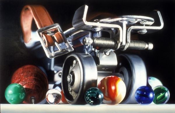Editor: This piece is an untitled assemblage sculpture by Paul du Toit, its date is unknown. Made from metal and found objects, the contrasting colours and layered mechanical components give the work a bold presence, as if sprung from the imagination. What elements of its visual composition stand out to you? Curator: The assemblage's vertical thrust is undeniable, punctuated by the strategic placement of colourful circular forms—gears, rings—that ascend toward what one might call a 'head' of stacked planes. Observe how the artist manipulates negative space; voids articulate the dense composition, inviting the eye to traverse and linger. Does the interplay between the readymade objects alter our perception of them individually? Editor: Definitely, the bright colours change their context. What do you think about the white geometric shapes near the top of the artwork? Curator: Those pristine white planes create a compelling dialogue with the grittier, more obviously 'used' components below. Are they disruptive, or do they harmonize? They operate as framing devices, accentuating the three-dimensional form while subtly referencing the two-dimensional picture plane. Do you see a connection between these planes and the flat background? Editor: Now that you point it out, yes, they do feel like they’re trying to break free. Is that contrast a form of commentary? Curator: Perhaps, but formalistically speaking, it reinforces the dynamic tension that propels the entire composition upward. This tension arises not only from the object's inherent materiality but also from their strategic arrangement and colour relationship. It suggests that through this strategic arranging of parts the artist suggests a state of continual becoming. What does this assemblage signify, if anything? Editor: Initially, I saw industrial elements reformed into an aesthetic piece, but your formal reading opened my eyes to considering depth and the dialogue between the different parts in their use of colour. Curator: Precisely. By analyzing intrinsic forms, relationships, and juxtapositions, we gain insights into not just what it is, but how it is, and ultimately, perhaps, why it is. The significance resides within.