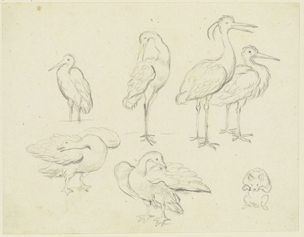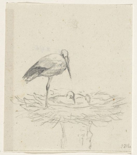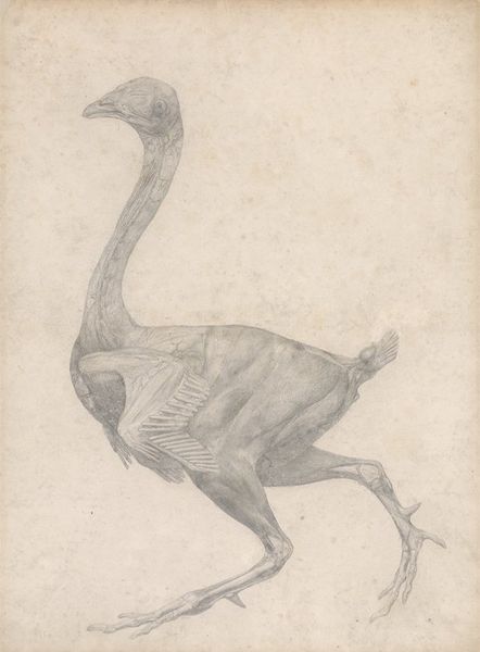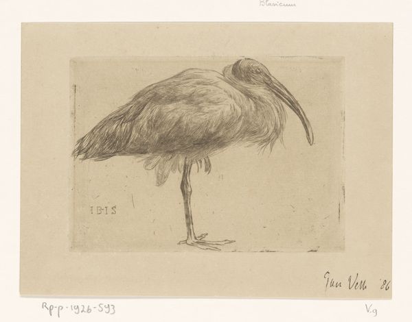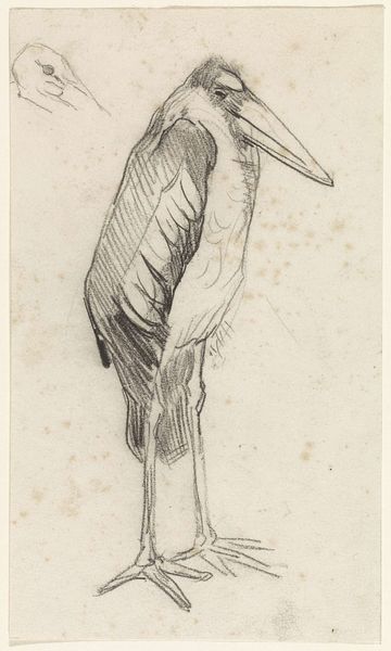 Editor: Here we have "Opgezette ibis," or "Stuffed Ibis," a pencil drawing on paper, dating between 1874 and 1925, by Jan Veth. The texture really jumps out at me; you can almost feel the feathers. What do you make of it? Curator: What I find compelling is to think about the material circumstances of this 'stuffed' ibis. Was it sourced for scientific study, destined to become a museum object? Each stage involves labour, from the acquisition of the ibis itself to the making of the paper and the production of the pencil, raising issues around access and artistic interpretation. Editor: That's a different angle than I expected! So you're thinking about where the ibis came from, how it ended up like this? Curator: Exactly. And beyond that, think about Veth’s access to art materials and to this ‘subject.’ Pencil and paper – humble materials perhaps, but whose production involved extensive labour and complex global networks. What does that say about the artistic process during the period? Editor: So, not just a simple drawing of a bird, but a point of connection to a much bigger world of making and trading... Curator: Precisely. Consider the societal value then placed on accurate naturalistic drawings, think of it as documenting materials obtained at the cost of labour. Editor: I guess I never thought about a drawing in terms of global production before! I’ll definitely look at art with a more critical eye toward its materials from now on. Curator: Indeed. The artist’s hand is guided by more than just skill; it’s connected to a complex web of production.
