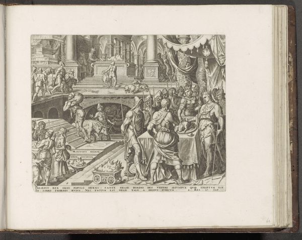 Philips Galle created this print, "Daniel Refuses to Worship the Idol Bel," in the late 16th century. It's made using the intaglio process. Galle would have used a sharp tool called a burin to incise lines directly into a copper plate. The plate is then inked, and the surface wiped clean, leaving ink only in the engraved lines. When pressed against paper, the image transfers. Look closely, and you'll notice the remarkable detail achieved through this painstaking process. The varying density and direction of lines create subtle gradations of tone, bringing volume and depth to the scene. See how this technique renders the folds of fabric, the texture of beards, and the play of light across the architectural setting. The art of engraving was crucial for disseminating images widely in early modern Europe, allowing stories and ideas to circulate beyond the elite. Galle’s print is a testament to the power of skilled craft in shaping cultural and religious narratives, demonstrating how the labor-intensive process of printmaking could amplify messages of faith and resistance.