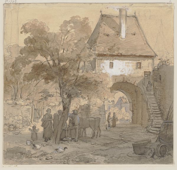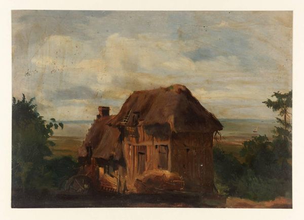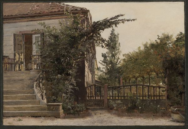 Christen Købke painted this view of his father's house using oil on paper. Notice how the smooth, absorbent paper support has influenced the paint's appearance, creating soft, muted colors and a slightly matte surface. Købke built up thin layers of pigment, allowing the paper's texture to subtly show through, adding depth and luminosity to the scene. The visible brushstrokes indicate a direct, observational approach. The choice of oil paint, a traditional medium, contrasts with the more humble paper support, reflecting Købke's ability to find beauty in everyday surroundings. The careful rendering of architectural details and natural light elevates a simple domestic scene to a work of art, blurring the lines between traditional fine art and the intimate observation of daily life. This emphasis on materiality and process invites us to appreciate the artist's skill in transforming ordinary materials into something extraordinary.