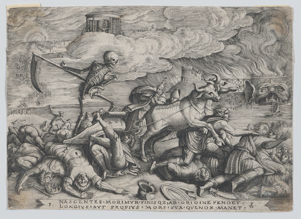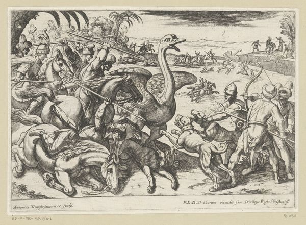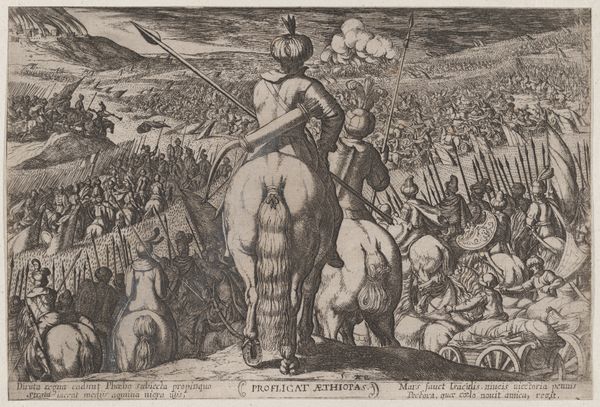 Antonio Tempesta made this print, "David Killing Goliath," around the turn of the 17th century using the intaglio process. This involved incising lines into a copper plate, inking the surface, then wiping it clean so the ink remained only in the grooves. The plate was then pressed onto paper, creating a mirror image of the original design. Look closely, and you'll see that the image is entirely built from line work, varying in thickness to create areas of tone and shadow. This printmaking technique wasn't exactly everyday, but neither was it considered high art at the time. It was a reproductive medium, ideal for rapidly disseminating images for mass consumption. Consider how Tempesta's skill transforms a relatively simple industrial process into something intricate and visually arresting. Through this print, the biblical scene of David and Goliath is not just depicted, but also made widely accessible, blurring the lines between art, craft, and commerce.