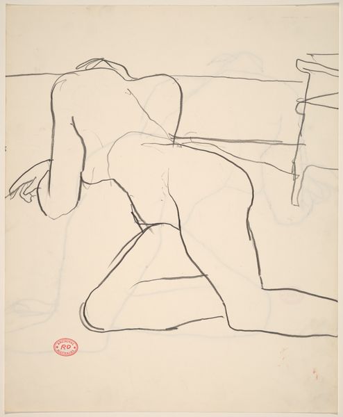 Curator: We’re looking at an untitled drawing by Richard Diebenkorn, created sometime between 1955 and 1967. It depicts a female nude, lying back on a bed, with her dress partially open. Editor: My first impression? It's a study in repose, and somewhat melancholic. The lines are spare, almost hesitant, as if capturing a fleeting moment of intimacy and introspection. Curator: The drawing, executed in pencil, really showcases Diebenkorn's ability to suggest volume and form with minimal strokes. Notice how the angle and the overlapping lines create depth. The gaze directed outward leads me to question if it mirrors the inner contemplations of both the artist and his muse? Editor: Absolutely. The lack of detail forces us to fill in the gaps, to project our own emotions onto her. And the open dress...it's not overtly sexual, but vulnerable, stripped bare of not just clothing, but pretense, perhaps even identity. Diebenkorn here explores the semiotics of raw unrefined shape. Curator: Precisely. It echoes the themes Diebenkorn explored throughout his figurative period— that interplay between the figure and the surrounding space. The simplicity focuses not only the form of the body but how line and shadow combine to tell this complex narrative. Editor: Thinking about line, note its economical function defining shape and form without superfluous ornamentation. Consider it a signifier within a constructed pictorial reality. There is something disquieting and profoundly affective in this apparent fragmentation, echoing a shared sentiment during the peak years of existential phenomenology. Curator: Indeed. In his oeuvre, we find an embrace of reduction leading to an augmentation in meaning, mirroring the essence of being, the sublime and beauty contained within this simple rendering. The essence of the emotional is captured. Editor: A beautiful reflection. Ultimately, Diebenkorn offers not just an image but a window into the artist’s psyche as well as, dare I say, a shared human state. Curator: Beautifully put. The piece exemplifies how reduction leads to clarity and feeling, prompting questions about our identity and presence in the world.