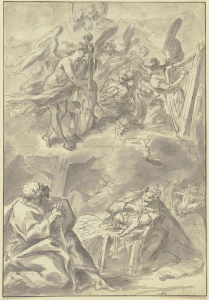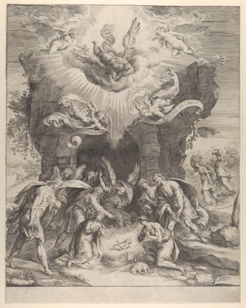 This drawing, "Christ Surrounded by Angels" comes to us from an anonymous artist. The piece depicts a traditional Christian scene, and invites us to consider the cultural and religious contexts that shaped its creation. How do traditional representations of Christ and angels influence our understanding of spirituality and power? Consider the identities represented here: a central, divine figure surrounded by a celestial host. What does this image tell us about the hierarchies and power structures within religious narratives? The anonymous nature of the artist invites us to reflect on the role of individual expression within established religious traditions. Does the lack of a known author affect the emotional and spiritual impact of the work? Notice the play of light and shadow, creating a sense of otherworldly transcendence. How does this artistic choice contribute to the emotional resonance of the scene? The artwork reflects societal values, inviting contemplation on the personal dimensions of faith, divinity, and the quest for higher meaning.