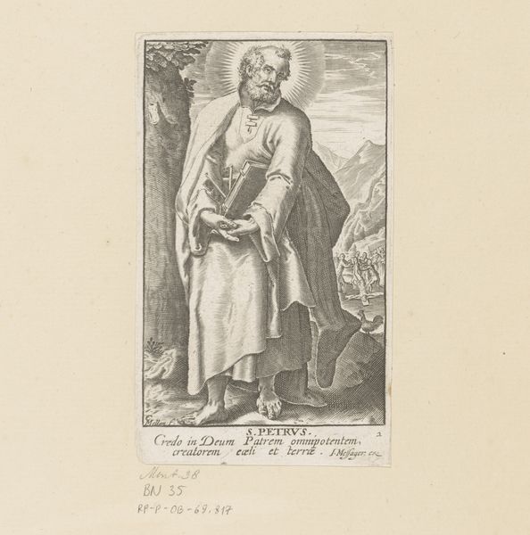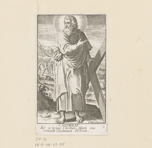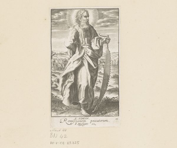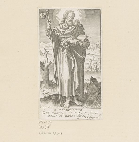 Claude Mellan created this engraving of H. Matteüs, in the 17th century. At first glance, the most striking feature of the work is its reliance on a single, continuous line to define form, texture, and value. This technique, demanding exceptional control and precision, creates a visual experience that is both detailed and surprisingly unified. Mellan's engraving is a study in the power of line. The single, unbroken line winds and loops across the surface to define the figure of Saint Matthew, his robes, and the surrounding landscape. This method is not just a technical feat; it challenges the traditional understanding of how images are constructed. The density and variation of the line create areas of light and shadow, giving the figure volume and presence. This approach destabilizes the conventional values of artistic representation, questioning the boundaries between drawing and printmaking. The artwork invites us to consider how meaning is constructed through the simplest of means, pushing the limits of what is possible within the medium. Ultimately, the enduring impact of Mellan's work lies in its innovative use of line to redefine the very nature of representation.
