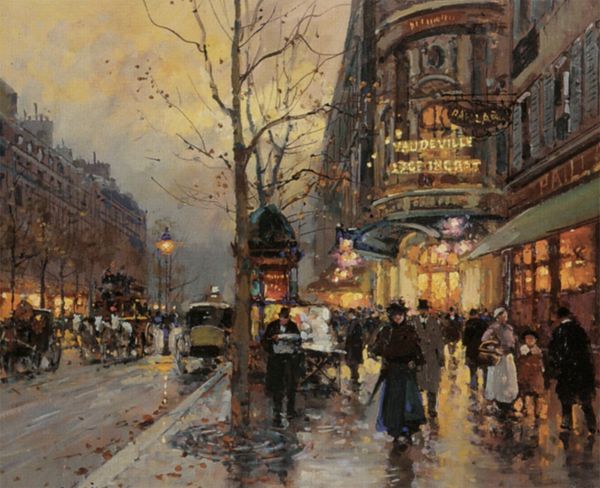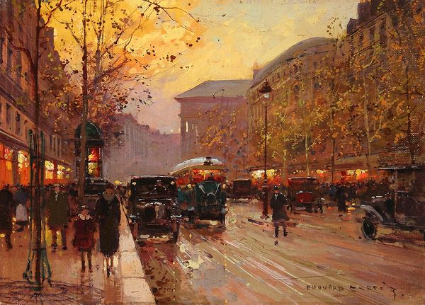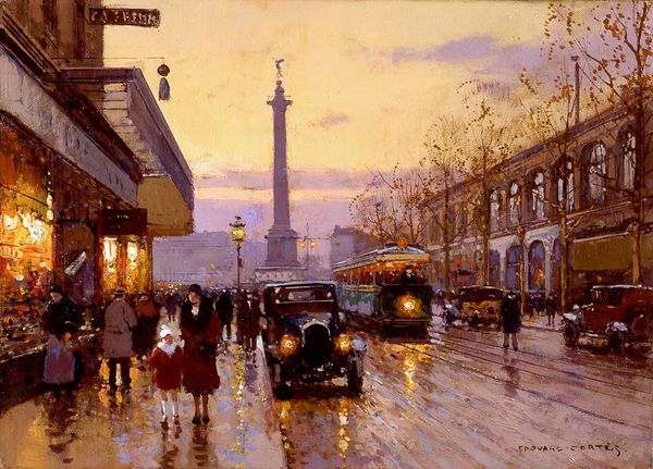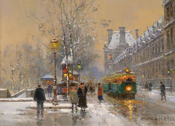Edouard Cortes painted this view of the Quay du Louvre in Paris, likely sometime in the early twentieth century. It presents a moment of urban life in transition. The painting balances traditional elements, such as the grand architecture of the Louvre, with signs of modernity like the electric streetcar and automobiles. Paris at this time was a city undergoing massive changes. Rapid industrialization brought both progress and social challenges. Artists like Cortes captured these shifts, often focusing on the beauty and dynamism of city life, while perhaps sidestepping deeper questions of class and labor. To fully appreciate this painting, we might turn to sources like period photographs or city planning documents. These resources reveal not only the physical changes to Paris but also the social and economic forces shaping its identity. Examining such sources alongside Cortes' work enriches our understanding of how art reflects, and sometimes obscures, the realities of its time.