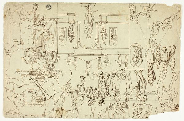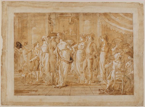 Giovanni Battista Lanzeni created this pen and brown ink drawing, *Feast in the House of Simon*, sometime between 1675 and 1737. During the Baroque period, artists like Lanzeni were often commissioned to create works by wealthy patrons, which had implications for how biblical scenes were portrayed. In this drawing, Lanzeni depicts a biblical scene, but there are other power dynamics at play. Who is invited to dine, who is left outside? The viewer is invited to consider the social hierarchies inherent in religious narratives. This drawing offers a glimpse into the lives of those included and excluded from religious and social circles. It reflects the artist's cultural context and invites us to consider how these dynamics resonate today. It’s in the act of drawing, in the making of the work, that Lanzeni seems to capture the complexities of faith, society, and human relationships.
