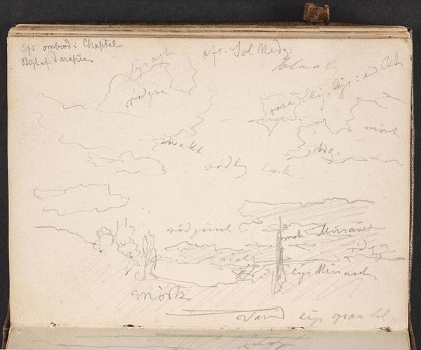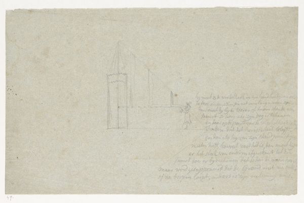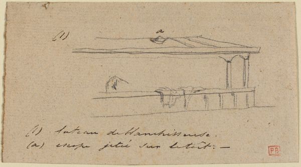 Curator: Ford Madox Brown's sketch, "Section of the Bridgewater Canal," offers a glimpse into 19th-century engineering and transport. Editor: It feels strangely… hopeful? Despite the industrial subject, the delicate lines and light suggest a sort of optimistic vision of progress. Curator: The canal was quite revolutionary, transforming the landscape and economy. Brown, though, gives us a cross-section, almost like an architect’s blueprint. Editor: I see the practicality, the intent to document. Yet, the horse pulling the barge looks almost majestic atop the structure. It's a celebration of work, maybe. Curator: Absolutely. Canals democratized trade, reshaped cities. Brown, known for his social realism, depicts the structures that literally supported this transformation. Editor: I like how the industrial and the pastoral meet—the horse, the hint of nature, balanced with the clear lines of engineering. It’s a lovely tension, isn't it? Curator: This sketch encapsulates a pivotal moment in history, showing how innovation reshaped the very fabric of society. Editor: It's more than just a document; it's a testament to human ingenuity and our enduring relationship with the natural world, even amidst industrial growth.