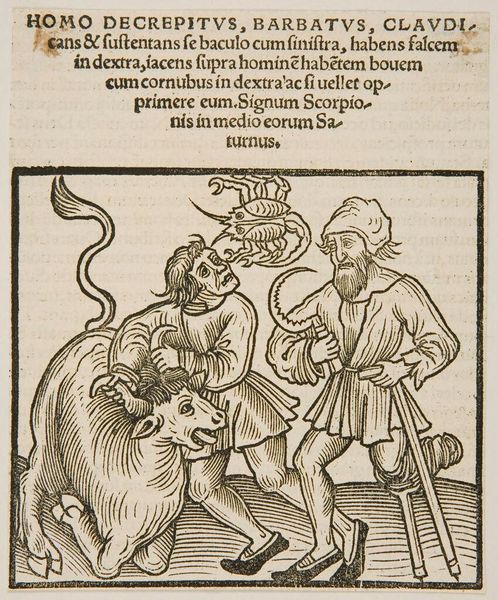 Curator: This is "Illustration V," an anonymous work held in the Harvard Art Museums. Immediately, its stark contrast and dramatic narrative seize your attention, don’t they? Editor: Absolutely. The composition is meticulously structured, leading the eye from the left-most figures to the authoritative figure on the right. What processes are at play here? Curator: Well, the visible text combined with the image suggests a relation to manuscript production and religious storytelling. I’d wager it served a didactic purpose, perhaps intended for wider, even popular consumption. The material itself implies particular production methods. Editor: Yes, and consider the artist's technique; the careful linework and calculated use of negative space. The dice and gaming board near the bottom of the image—symbolic elements all working together. Curator: And what of the people who made and consumed this? Were they of a particular class or social standing? Those are the crucial questions here. Editor: Indeed. Each component, from the granular to the grand, contributes to its overall impact. I come away seeing how the artist has used form to enhance our understanding. Curator: A perspective well-taken; the confluence of maker, material, and meaning certainly deepens my appreciation.