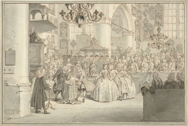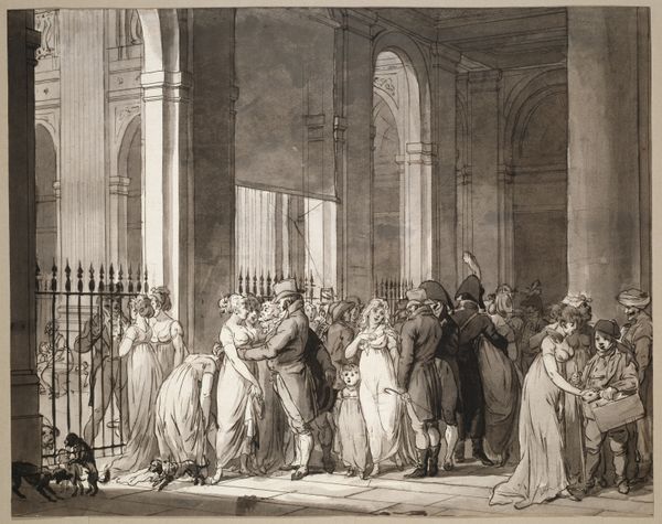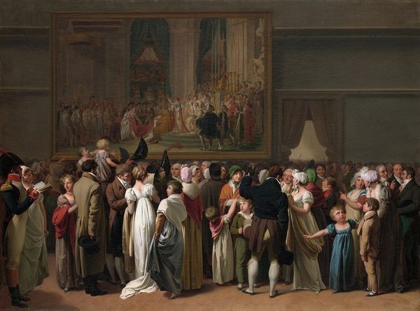 Louis Léopold Boilly created this drawing showing the public viewing the painting of the ‘Sacre’ at the Salon of the Louvre. The eye is drawn to the interplay between the crowd in the foreground and the monumental painting behind. Boilly masterfully uses tonal variations to distinguish between the active spectators and the art they observe. The foreground is rich with detail, capturing the diverse reactions and interactions of the viewers. The painting of the Sacre is rendered with lighter and sketchier lines. This contrast encourages a dialogue between art and its audience, suggesting that the experience of viewing is as significant as the artwork itself. Consider how Boilly positions us, the viewers of his drawing, in relation to the crowd at the Salon. We are invited to observe them, just as they observe the ‘Sacre’, creating layers of spectatorship and questioning the role of art in public life. The drawing invites us to reflect on the act of looking itself and the social dynamics of art appreciation.