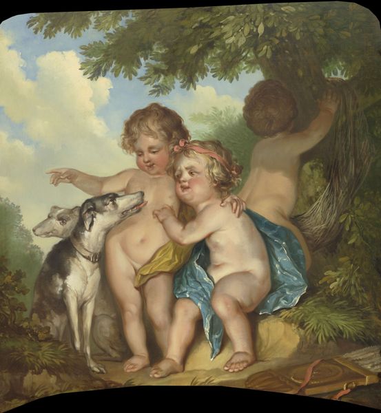 Art Historian: Welcome. We’re standing before a delightful canvas from the Städel Museum, titled "Two Putti with Garlands of Flowers." Its creation is attributed to an anonymous artist, sometime between 1700 and 1800. Artist: My initial impression? Mischief! Those cherubs look like they're in the middle of some divine prank, maybe yanking at that golden cloth is part of a game, and that is one grumpy baby on the right! Art Historian: Indeed. The playful interaction fits within the conventions of Baroque art, often characterized by its dynamism and theatricality. It's executed using oil paint, and you will notice there are many stylistic echoes of Baroque and Rococo, visible especially in the light that catches the cloth. Works like this served varied purposes. Sometimes, they’d function as allegory; the putti perhaps embodying love, spring, or ephemeral joy. Other times, the would decorate the houses of wealthy bourgeois, acting as genre scenes or even as family portraits. Artist: Ephemeral joy indeed. I can almost smell the perfume from those ridiculously oversized roses. But look closer—the landscape seems so serene, the light is buttery…yet that other little rascal looks utterly perturbed. It's that contrast, maybe between pleasure and unease, that really grabs me. Like they've stumbled upon some secret. Or are about to drop that massive vase. Art Historian: I think you hit on a key tension, yes! Consider the historical context: Europe then was a landscape of enormous social inequality masked by artistic depictions of frolicking children. A painting such as this one, in effect, is an allegory to class; with it, families might have demonstrated the happiness that allegedly reigned supreme under their dominion. These kinds of genre works also played into early modern market economics; wealthy collectors were extremely interested in scenes representing domestic life, joy, and wealth. Artist: I wonder about the anonymous artist—what their daily life might have been, hidden behind these joyful images commissioned to decorate someone’s drawing room. Art Historian: Indeed! Art history can be rather melancholic sometimes when we are confronted with unknown authorship. And speaking of melancholic, what kind of feeling do you take away from this picture, on our way out? Artist: I will certainly remember that sense of mischief tinged with unease. Something about it, for me, doesn’t fully let go. Art Historian: It seems those Baroque masters certainly knew how to strike a nerve that continues to resonate centuries later.
