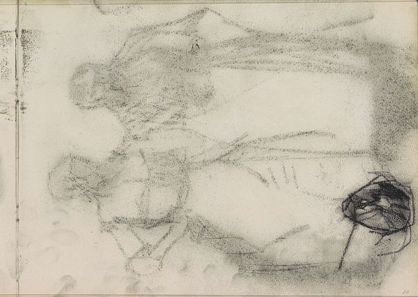 Curator: This is a sketch by John Singer Sargent, titled "Blank page; verso: Lady Margaret Spicer." Editor: The composition is strikingly unbalanced; the figure on the left is assertive, while the right side dissolves into almost nothing. Curator: Indeed, the sketch shows Lady Margaret Spicer, though faintly, it suggests a portrait of societal expectations placed upon women of that era. The blank space, in contrast, could represent the unfulfilled potential or the hidden realities behind the facade. Editor: Note how Sargent uses the contrast in shading; dense, directional lines behind the figure versus the almost imperceptible marks on the opposing side. It’s like two halves of a story struggling to coexist. Curator: It speaks volumes about the dichotomy that women faced – the curated image versus the unspoken truth. The visible, rendered image of the figure, placed on a single sheet alongside a blank space, gains significance through its duality. Editor: Considering its dimensions, roughly 25 by 37 centimeters, this small sketch holds substantial formal power. Curator: Absolutely, it's a potent visual commentary. Editor: Yes, seeing the interplay of form and emptiness, offers a rich interpretive lens.