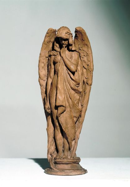 Ubaldo Gandolfi crafted this terracotta sculpture of Holy Roman Emperor Henry IV in the late 18th century. The warm, earthy tones of the terracotta lend a sense of humility to the scene, depicting Henry's penance at Canossa. Gandolfi masterfully manipulates the clay, using its inherent plasticity to convey both the Emperor's physical form and the rough texture of the tree trunk that frames him. The softness of the material allows for subtle modeling of Henry's facial expression and the folds of his garments, while the rougher, unrefined areas suggest the harshness of his surroundings. Terracotta, a common material, underscores the scene's themes of humility and humanity. Gandolfi elevates this humble material through skilled sculpting, inviting us to reconsider traditional hierarchies of both art and social status. By focusing on materials, making, and historical context, we gain a richer appreciation for the artwork's narrative and its challenge to established norms.
